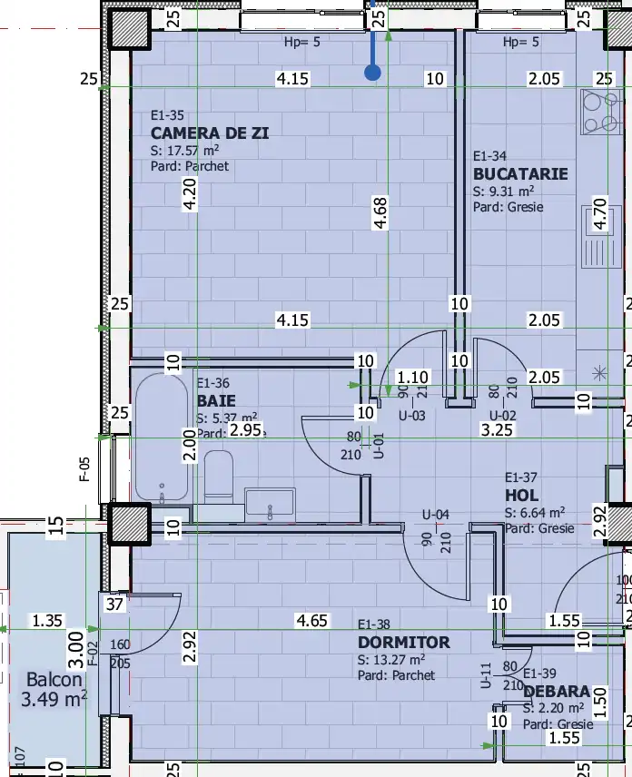 - Bucătărie9,31 m²