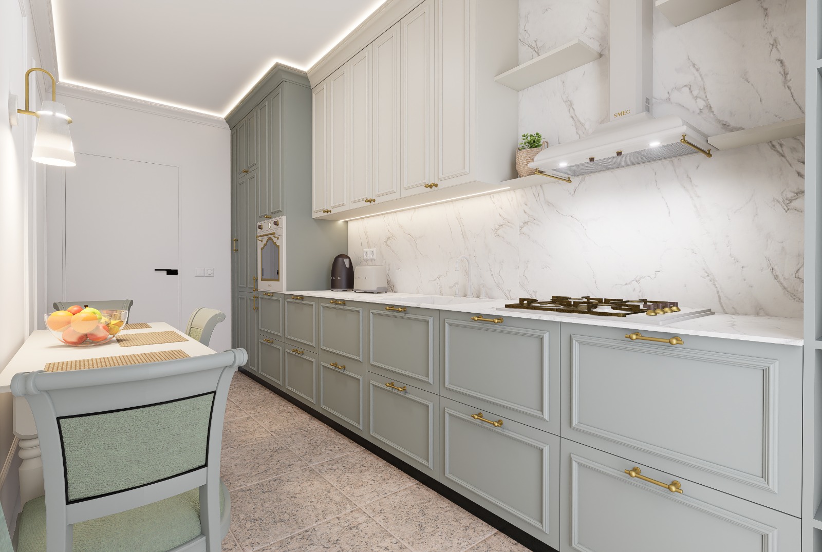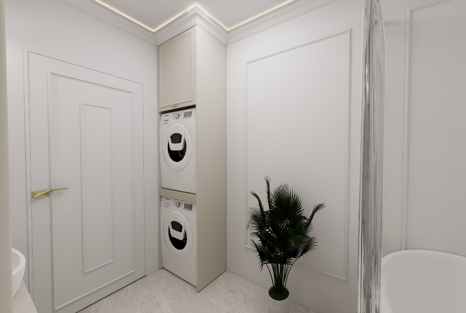 Selecție de finisaje moderne, rezistente și coerente vizual în întreg apartamentul.