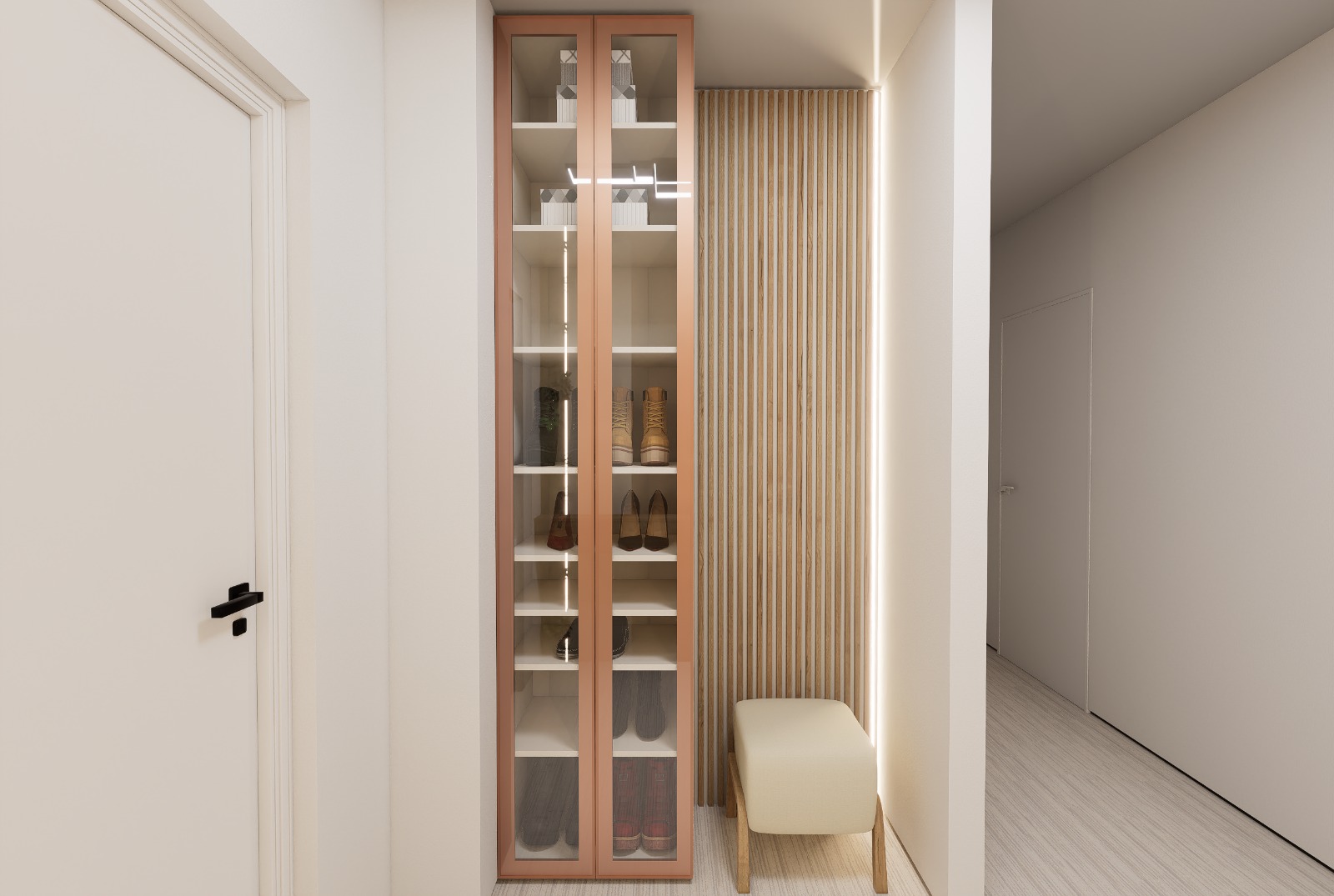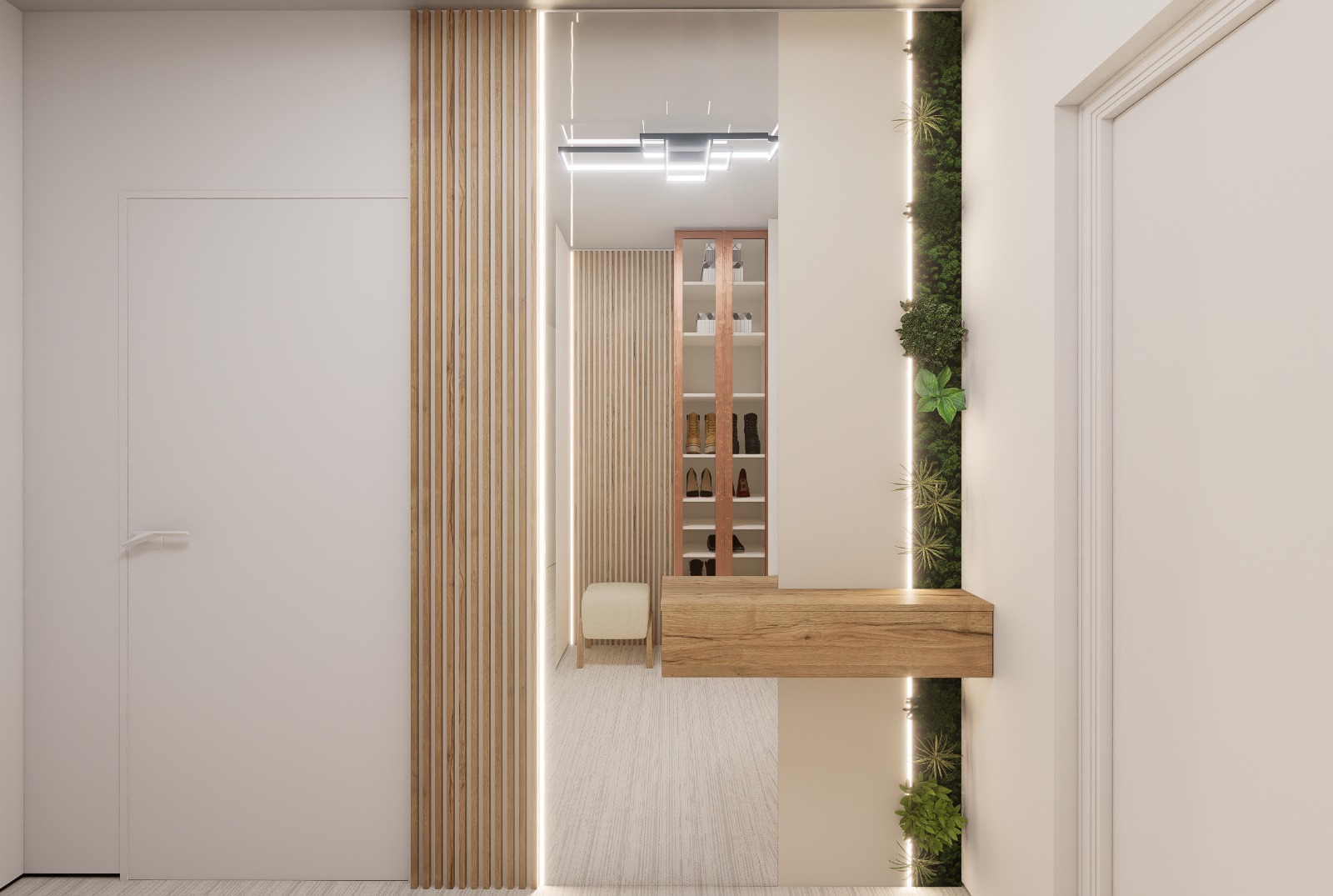 Selecție de finisaje moderne, rezistente și coerente vizual în întreg apartamentul.